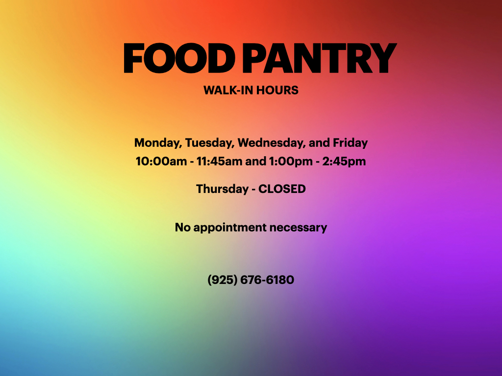 If you find yourself in need of help with food, we do have a pantry that is open Monday, Tuesday, Wednesday and Friday.